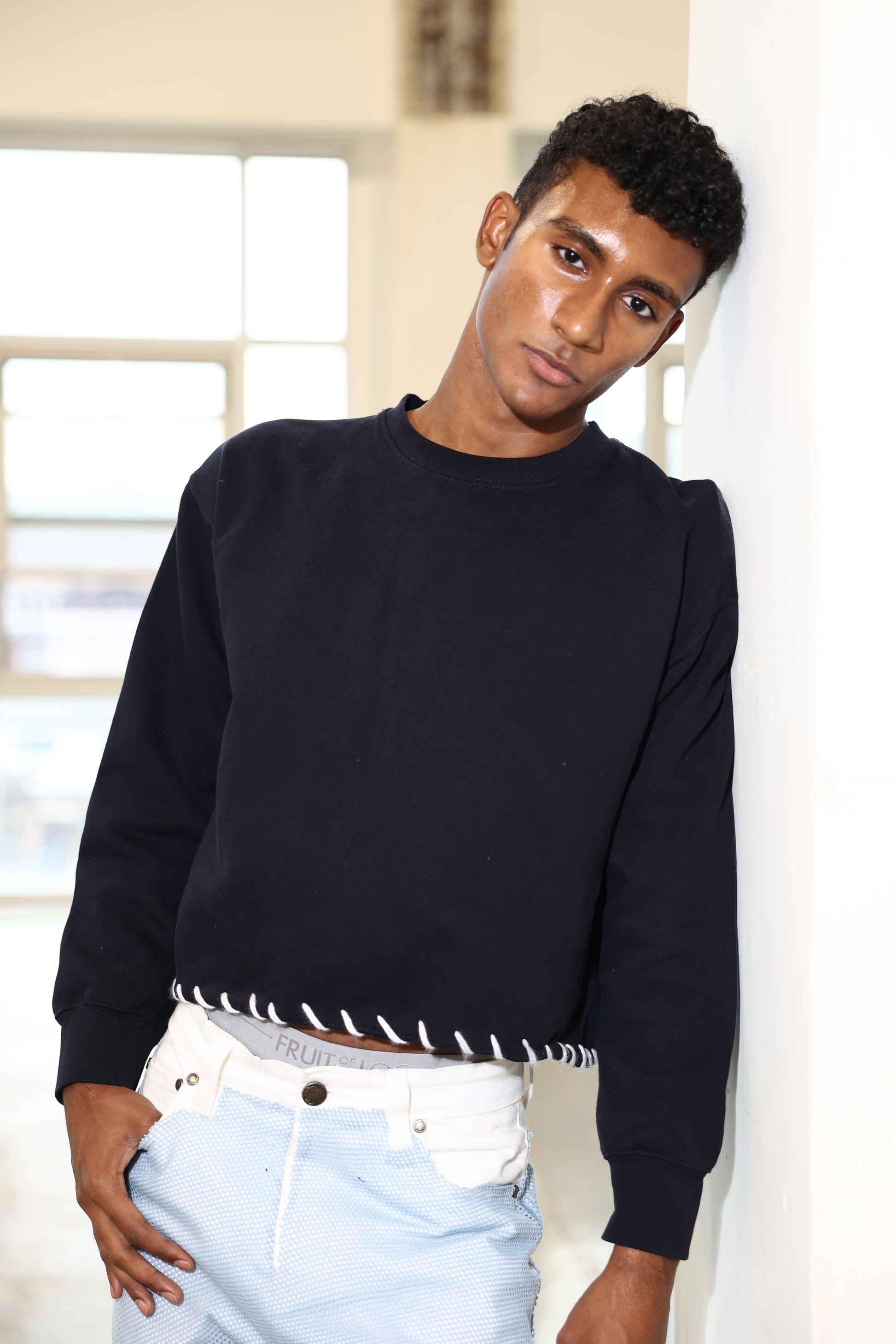 Cropped Shoulder Padded Crew Neck